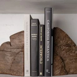 One of a kind bookends, solid wood. Each individual bookend measures approx. 12″H x 6″W.