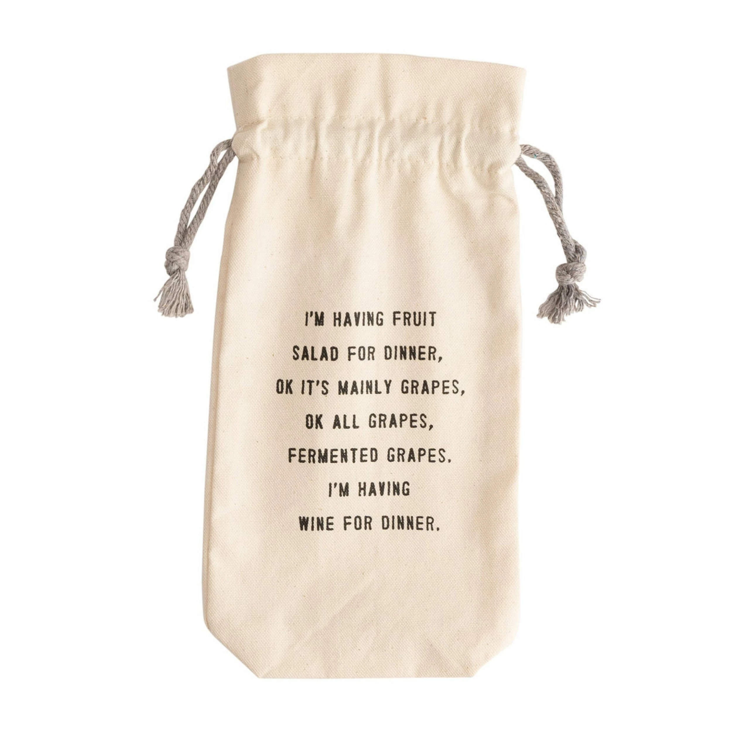 “I’m having fruit salad for dinner, ok it’s mainly grapes, fermented grapes. I’m having wine for dinner.”