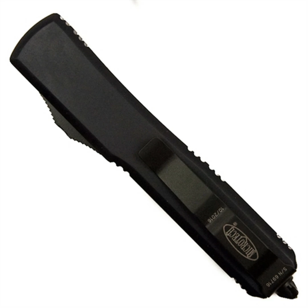 The Ultratech without question has been Microtech’s flagship out the front auto knife since its induction in 1999. Recently it has gone through an additional aesthetic redesign after the overwhelming success and praise of the traditional styling. While the dimensions of the Ultratech remain unchanged, the handle has been stripped back down to its original roots–now offering a smooth contoured chassis, however still boasting the tri-angle hardware, a redesigned thumb slide and the glass breaker that now includes a press fitted ball bearing for a more comfortable, but still functional, user experience. Each Microtech OTF knife has extremely sophisticated internal mechanisms which improve the overall operational functionality and reliability. This model features a contoured black handle complete with all-black hardware and an integrated glass breaker function along with a drop point style blade in a black finish. Made in the USA.